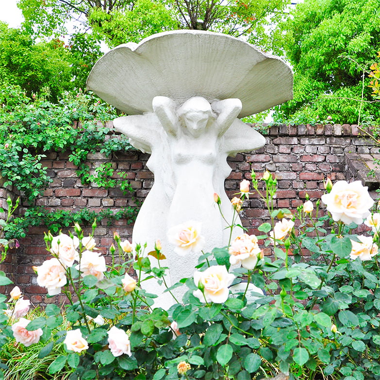 オールドローズガーデンのエリア内にある「乙女像」やローズガーデン入口にある「ローズカップ」は、リニューアル以前の面影を残すモニュメントとして今も大切に残されています。