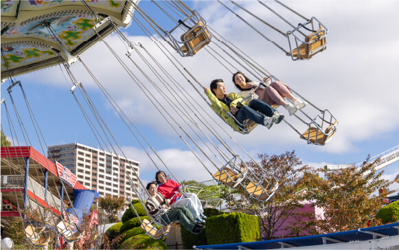 振りが大きくなるにつれ外に投げ出されそうなスリルが楽しめるアトラクションです。